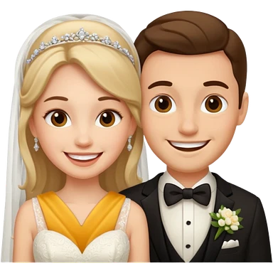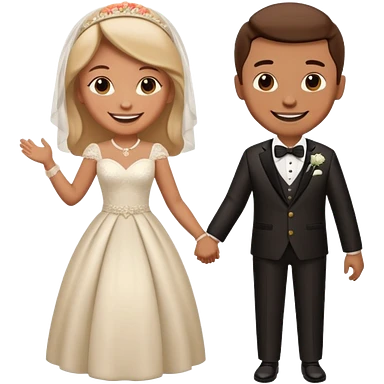 brown skin bald man in tuxedo and brown skin woman with short hair Marriage emoji