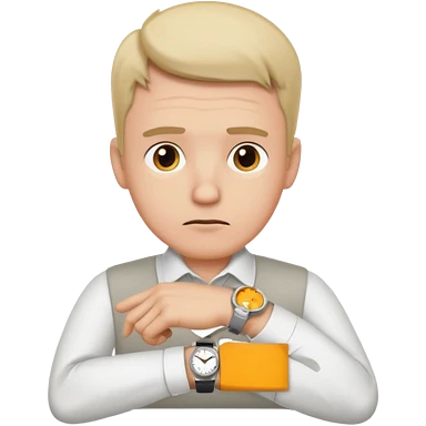 bored man pointing at his watch on his wrist emoji