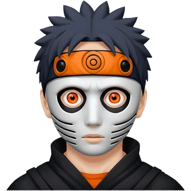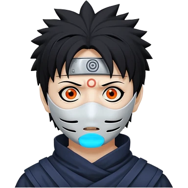 Erstelle mir obito aus Naruto der auf dem linken Auge das renegan hat und auf dem rechten Auge, das Sharingan emoji