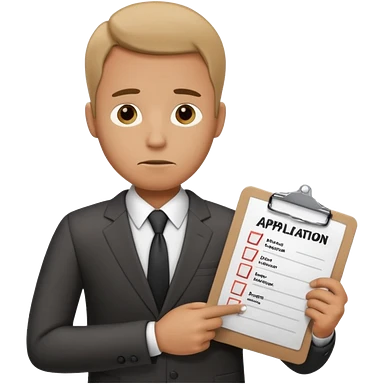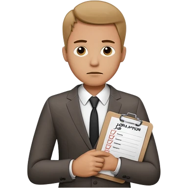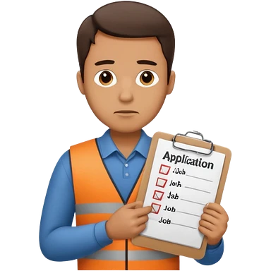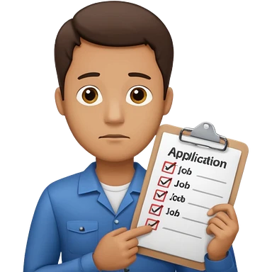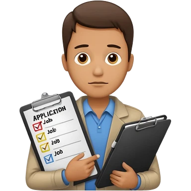 Man looking sad while holding a clipboard with a checklist that has a heading that says job application emoji | AI Emoji Generator