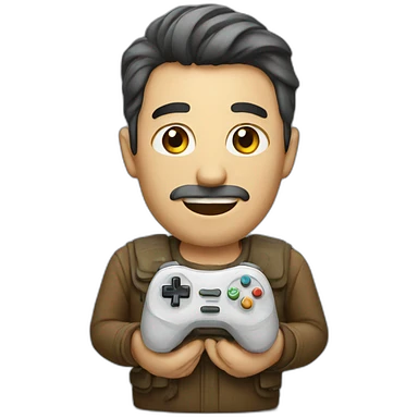 confident bearded man portrait, visage un peut plus rond avec le chapeau de luffy et tenant une manette de console dans sa main droite emoji