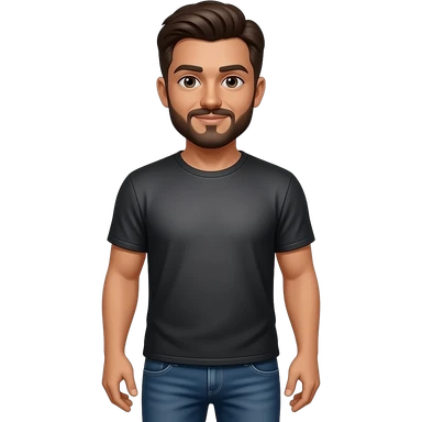standing male, medium skin tone, dark brown hair, short beard and mustache, standing, wearing jeans, a faded black / gunmetal gray t-shirt and jeans emoji