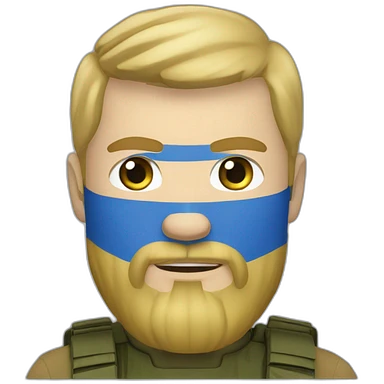 ukrainian military blonde man with a beard with green eyes with blue paint on the face emoji
