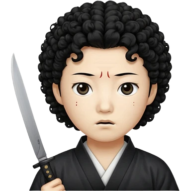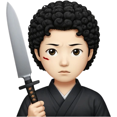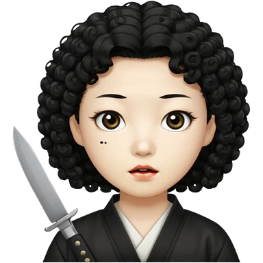 Korean murderer white skin with Asian eyes and holding knife with black Korean perm hair emoji