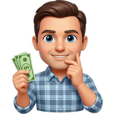 man thinking if he should buy it or not money emoji