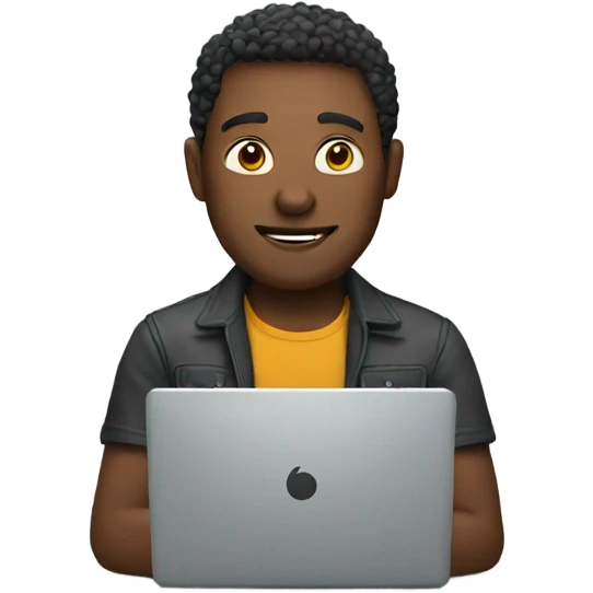 Man working on a laptop brown boy dark skin with glasses and beard emoji