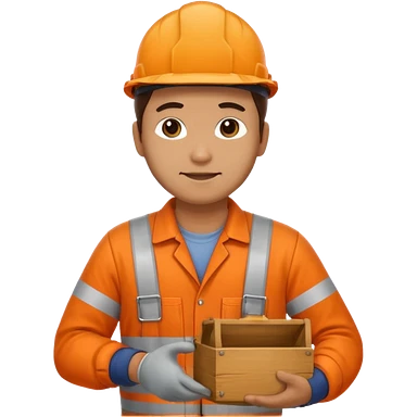 man standing sideways, wearing orange hi visibility overalls, carrying a box emoji