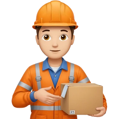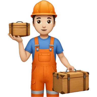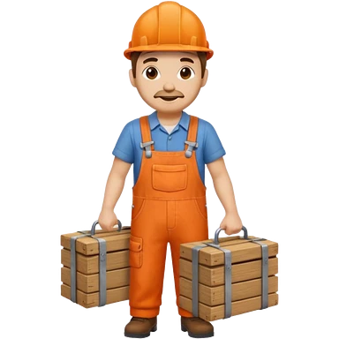 man orange overalls carrying a large box in front of him emoji | AI Emoji Generator