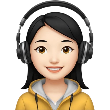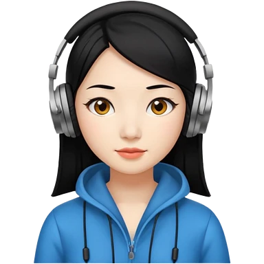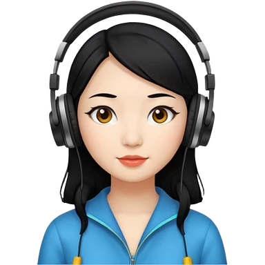 Chinese Virtual Assistant with Black Hair with headphone on emoji