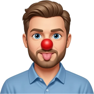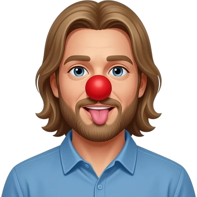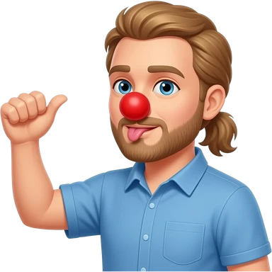 light Brown hair that goes behind the back on a man in blue shirt with beard Licking butt with red foam clown nose in Apple person emoji format emoji