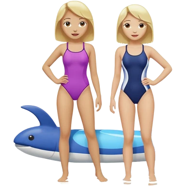 2 women light skin blonde hair with swinsuit fuul body emoji