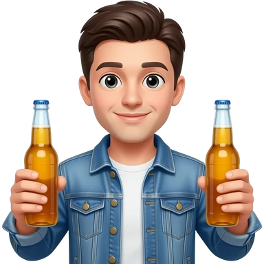 man wearing blue jeans, a white hoodie, black leather gloves, a white helmet with a face shield emoji