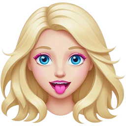 Cinematic realistic blonde with long hair, blue eyes and pink lips, rejoices emoji