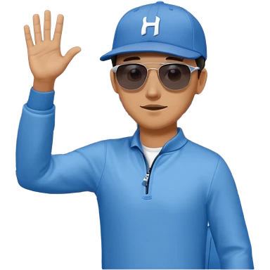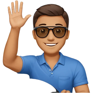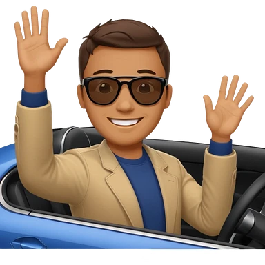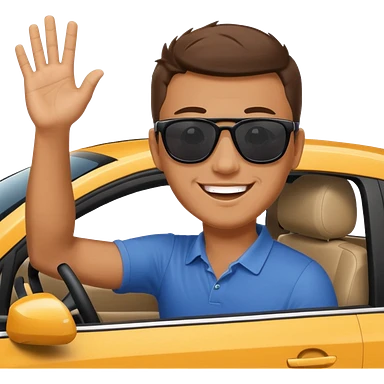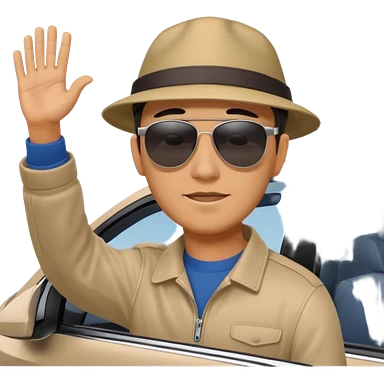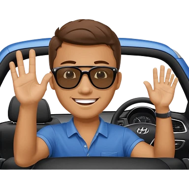 Hyundai ionic driving man waving behind emoji