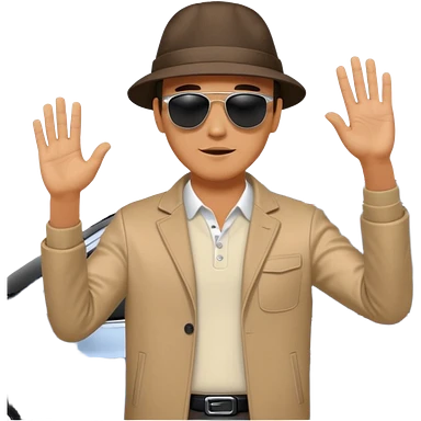 Man in plane clothes running after the car called hyundai ionic emoji