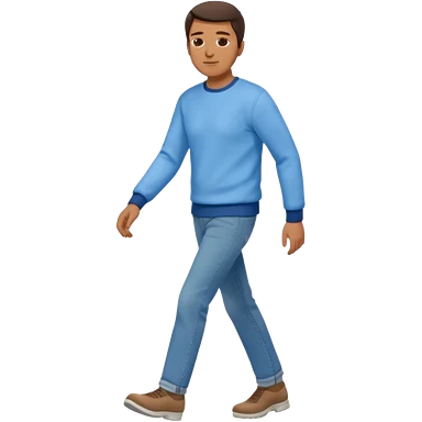 iOS emoji style - a black man in casual clothes and wearing trainers. Walking quickly. He does not have a bag or backpack. emoji