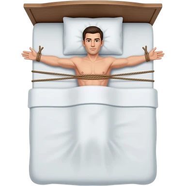 Man tied spread eagle on bed emoji