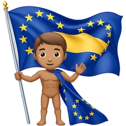 European man with blue eyes using a MacBook, simple and expressive emoji emoji