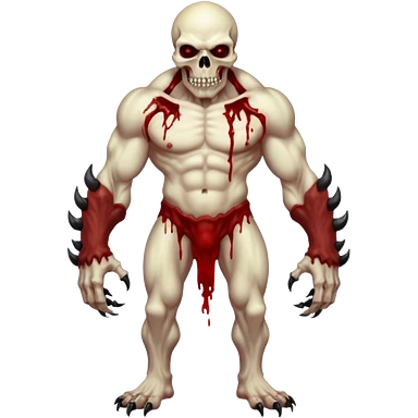 A Hideous mutated monster covered in rotton flesh and bloodin the style of your bleeding skull art, full body. Final boss character emoji
