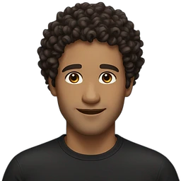 man short curly dark brown hair curls on forehead with brown eyes smiling black shirt emoji