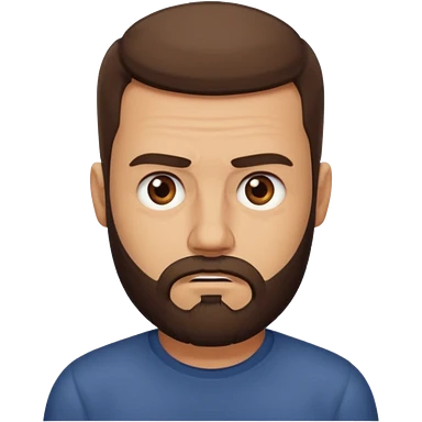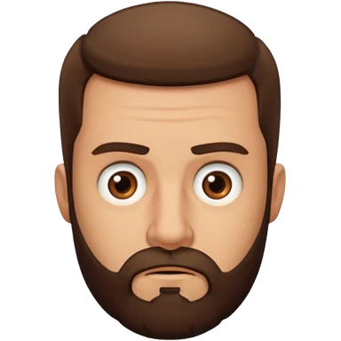 man, short hair, brown eyes, full beard, frowned eyes emoji