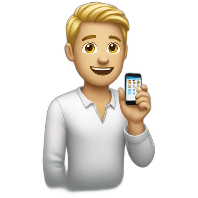 man showing his mobile emoji | AI Emoji Generator