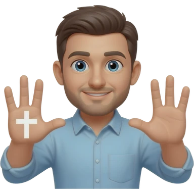 girl in a white T-shirt and a black apron shows a cross with her hands emoji