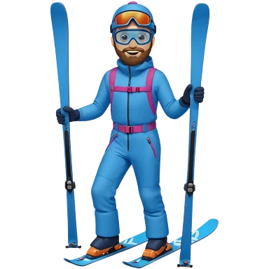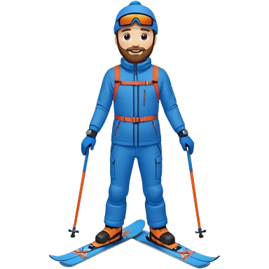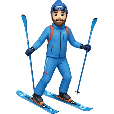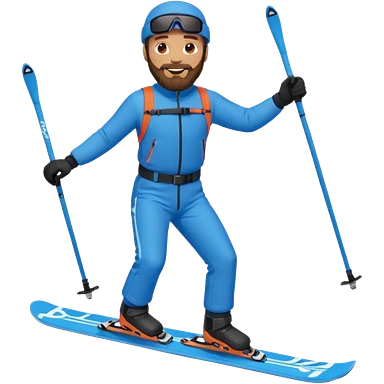 bearded man skiing down, blue outfit, smiling. full body view. emoji