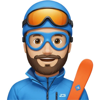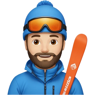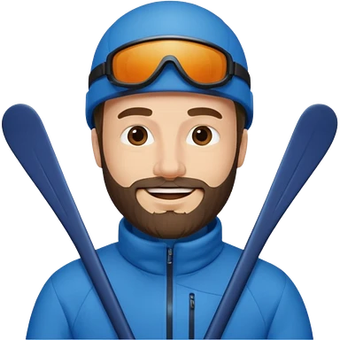 bearded man skiing, blue outfit, smiling emoji