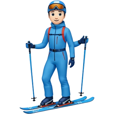 man skiing, blue outfit, smiling emoji