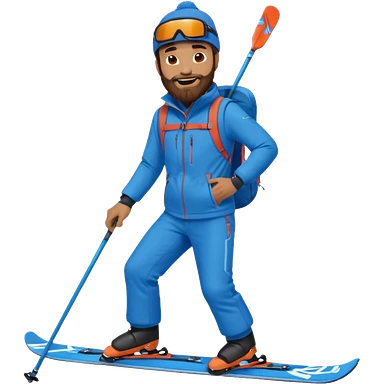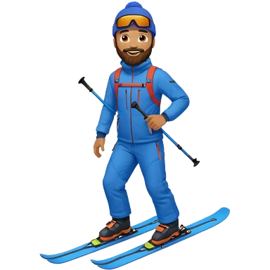bearded man skiing, blue outfit, smiling. full body view emoji
