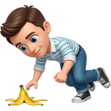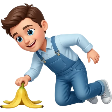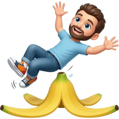 Design an emoji of a banana 🍌 slipping on its own peel, mid-air, shocked face. emoji