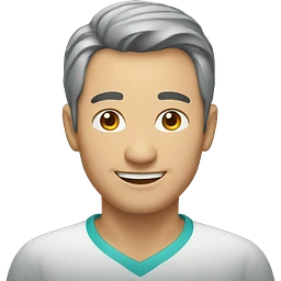 man smiling broadly, black short hair combed back, clean-shaven face with slight stubble emoji