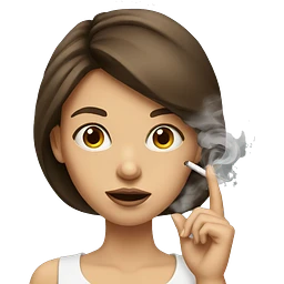 woman with long lashes and a side part bob smoking a cigarette emoji