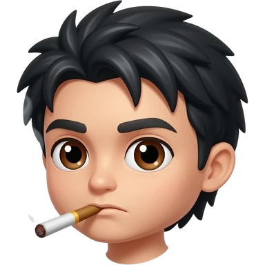 Chibi man black hair brown eyes smoking weed. Smoke rolling in emoji