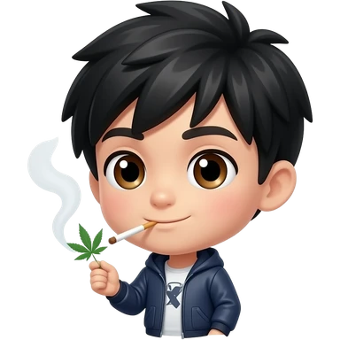 Chibi man black hair brown eyes smoking weed emoji
