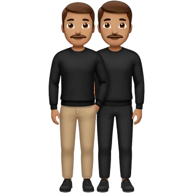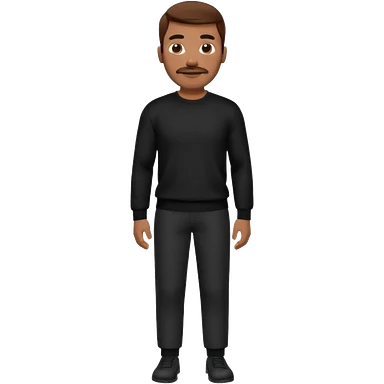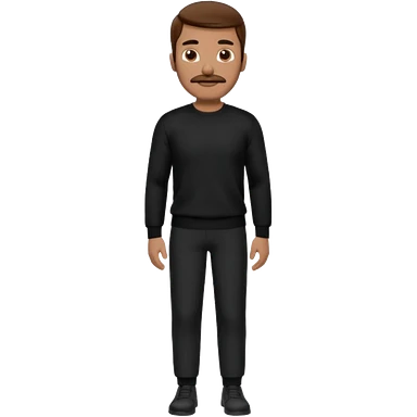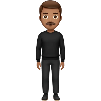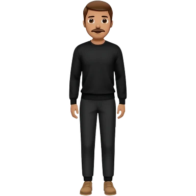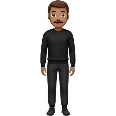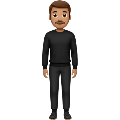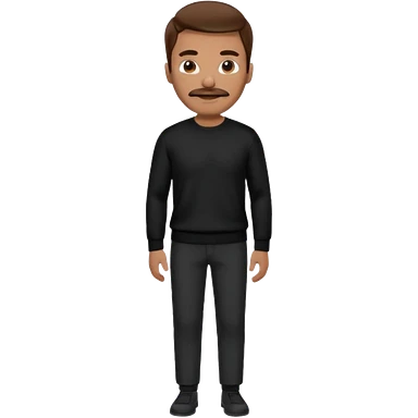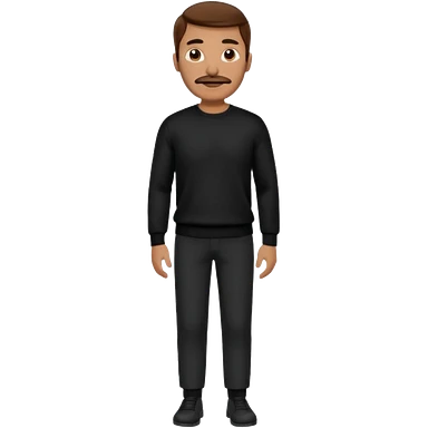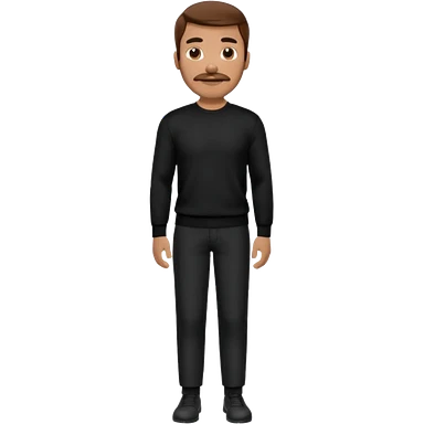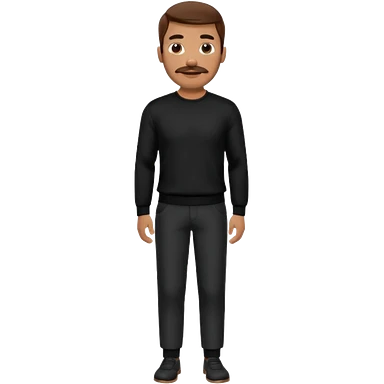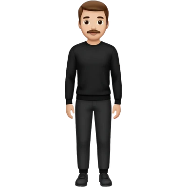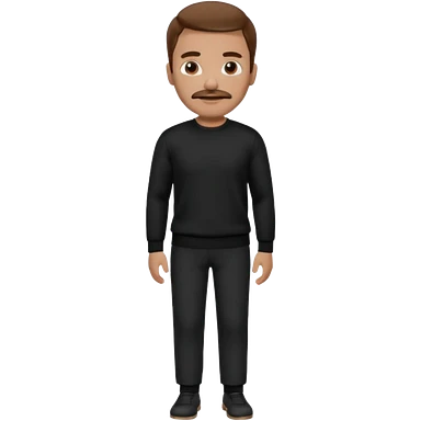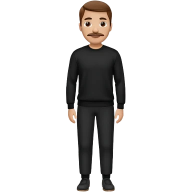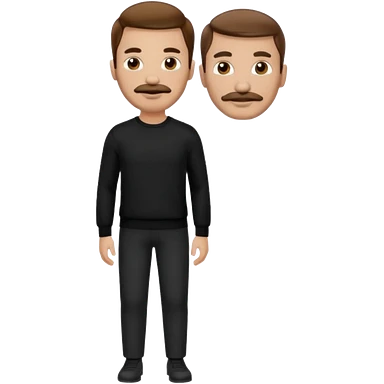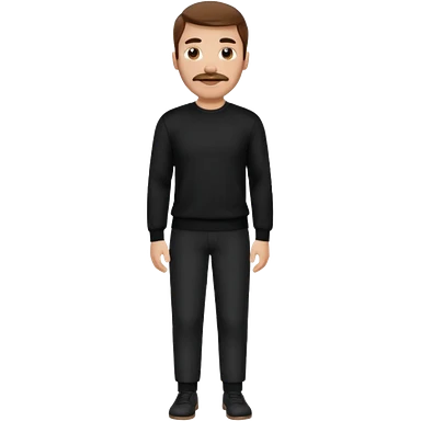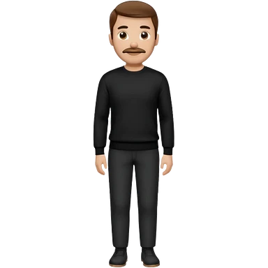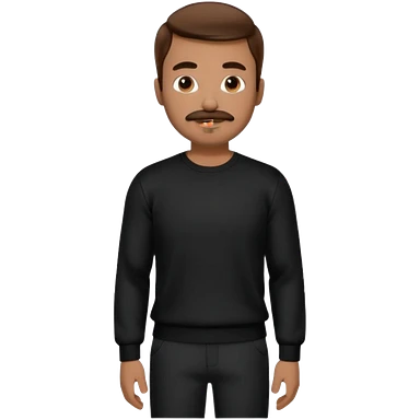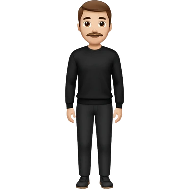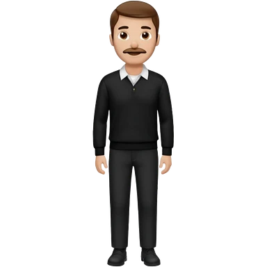 man with mustache, brown hair, 33years old, shirt, high temple Black pullover with a white shirt underneath and black fabric trousers 👕🖤👖 emoji