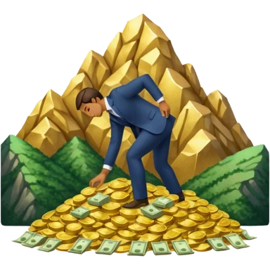 A man bows to a mountain of money emoji
