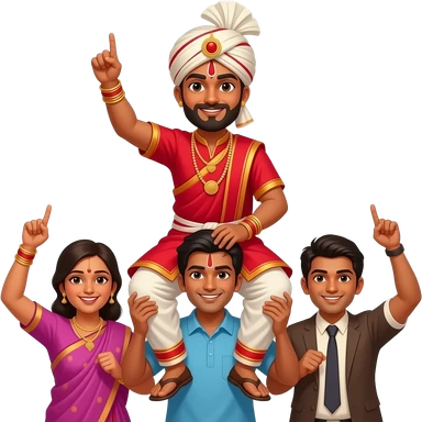 Indian hero carried on shoulders by a group of people emoji