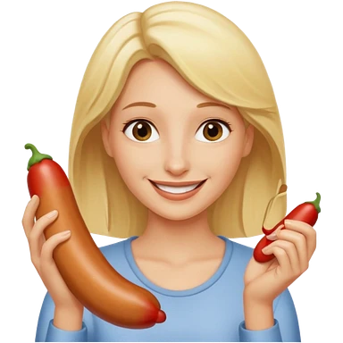 Naked blonde with both hands grabbing hotdog weiner emoji