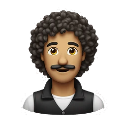 man strong with curly brown hair with mustache and no beard emoji | AI Emoji Generator