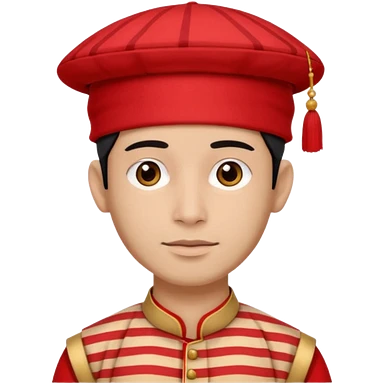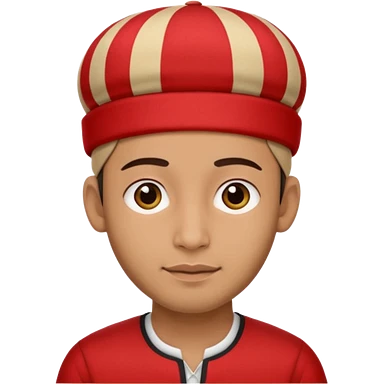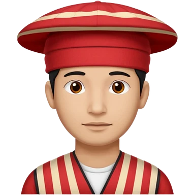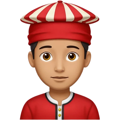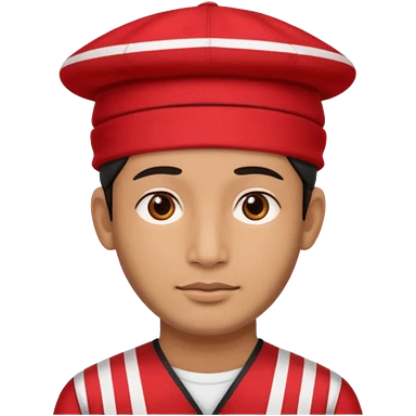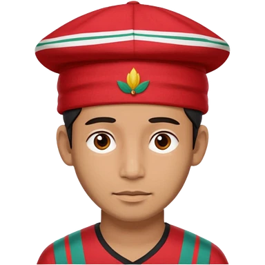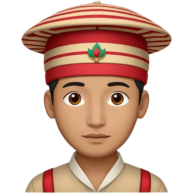 man wearing a Nepali Dhaka topi with stripes and design on it and it should be in red colour emoji