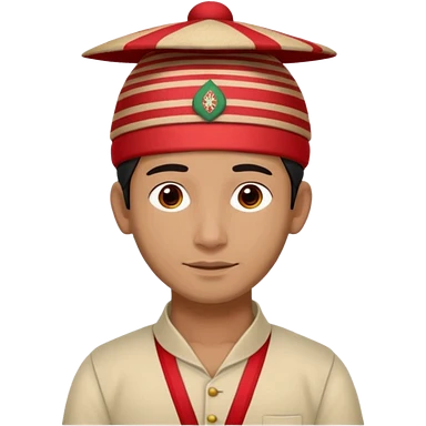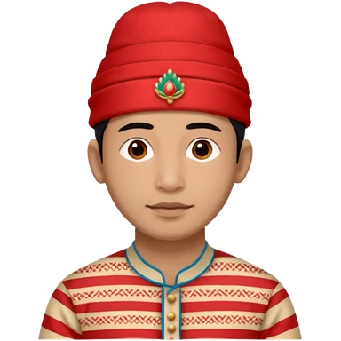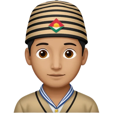 man wearing a Nepali Dhaka topi with stripes and design on it emoji