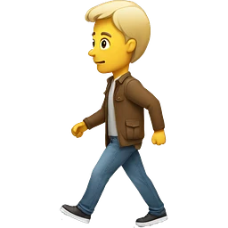 iOS emoji style - a black man in casual clothes and wearing trainers. Walking quickly. He does not have a bag or backpack. emoji