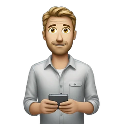 man watching stream with toy knifes in his hands. He wears glasses and have brown hair and beard emoji