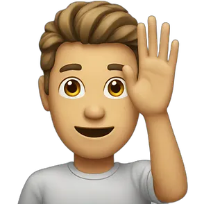 20 year old man with a shaved mustache and dark brown hair and brown eyes and black earrings in both his ears waving hello with his right arm and hand emoji