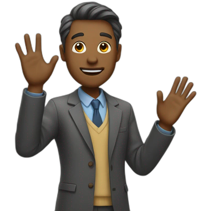 Man waving his arms in the air with his thumbs pointing in his direction emoji