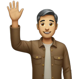 an indian man wearing a green sweatshirt, long hair down to chest, no beard or mustache, waving goodbye, close up emoji