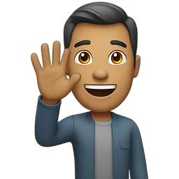Man waving his arms in the air with his thumbs pointing in his direction emoji