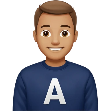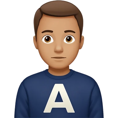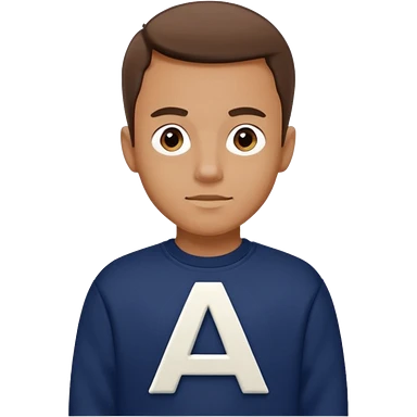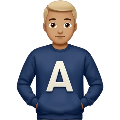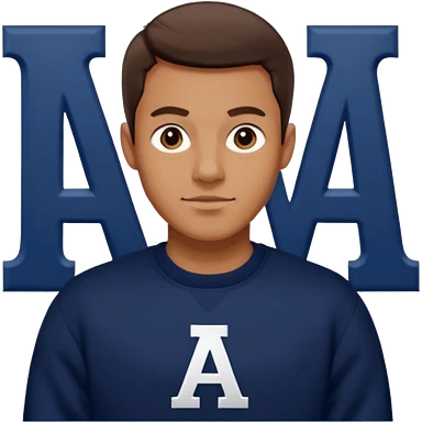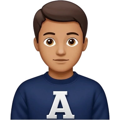 man wearing a dark navy sweater with a giant white letter A on the upper right of the chest in collegiate font emoji | AI Emoji Generator